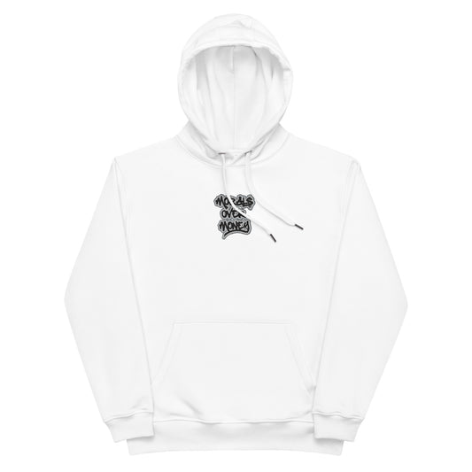 Organic 'Morals Over Money' Premium Eco Hoody - Large Embroidery