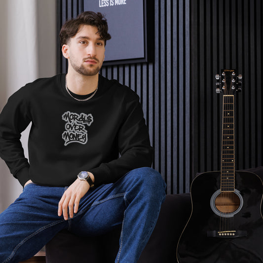 100% Organic Cotton 'Morals Over Money' Embroidered Eco Jumper