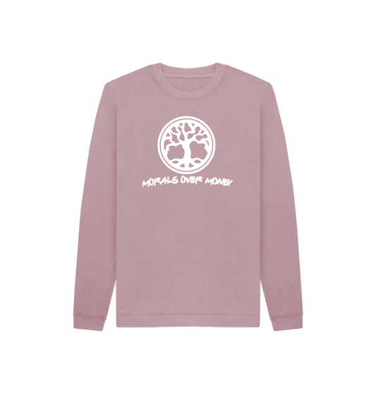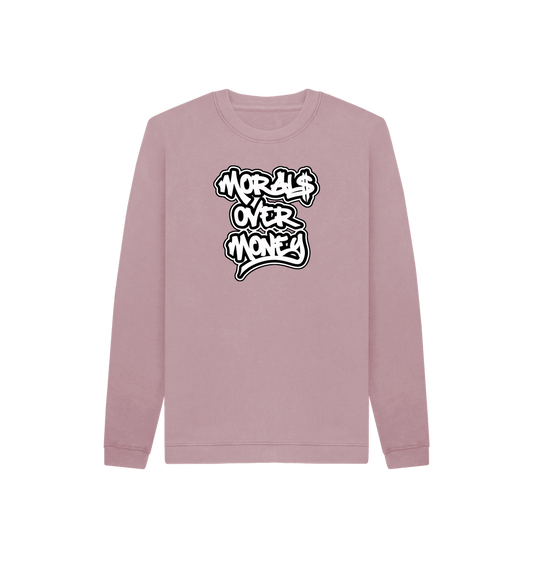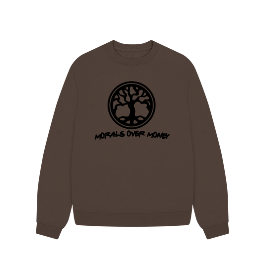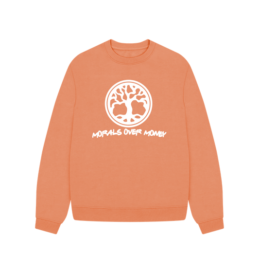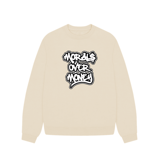 Women's 100% Organic Cotton 'Morals Over Money' Oversized Eco Jumper - Large White Print