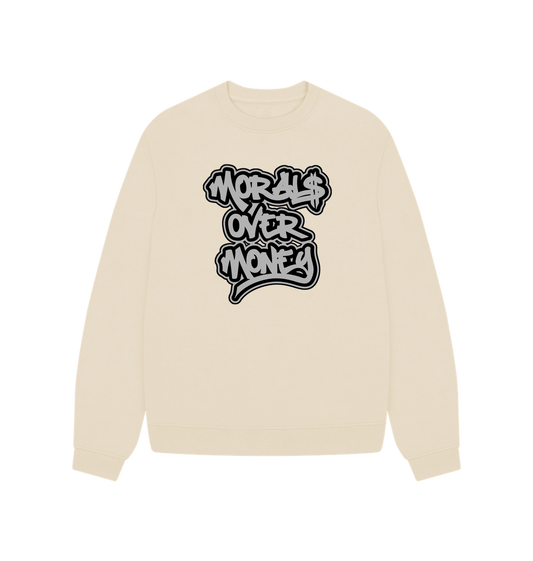 Women's 100% Organic Cotton 'Morals Over Money' Oversized Eco Jumper - Large Grey Print