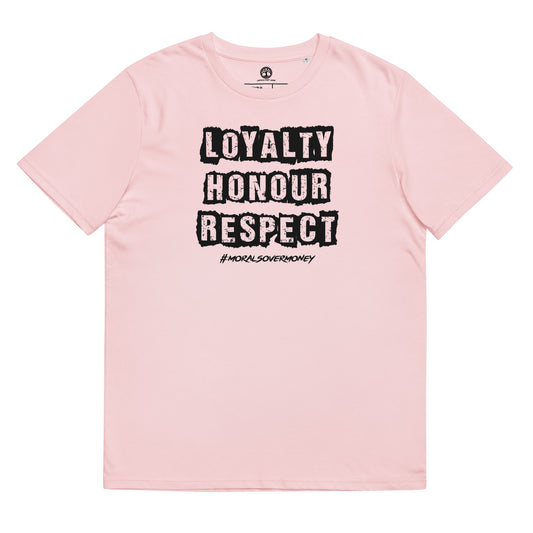 100% Organic Cotton 'Loyalty Honour Respect' Eco Tee - Black Logo