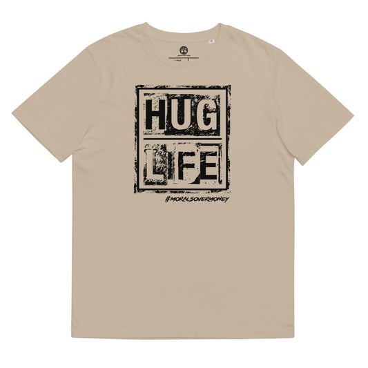 100% Organic Cotton 'Morals Over Money - Hug Life' Eco Tee - White Logo
