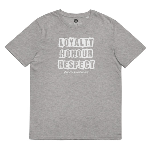 100% Organic Cotton 'Loyalty Honour Respect' Eco Tee - White Logo