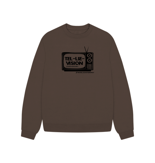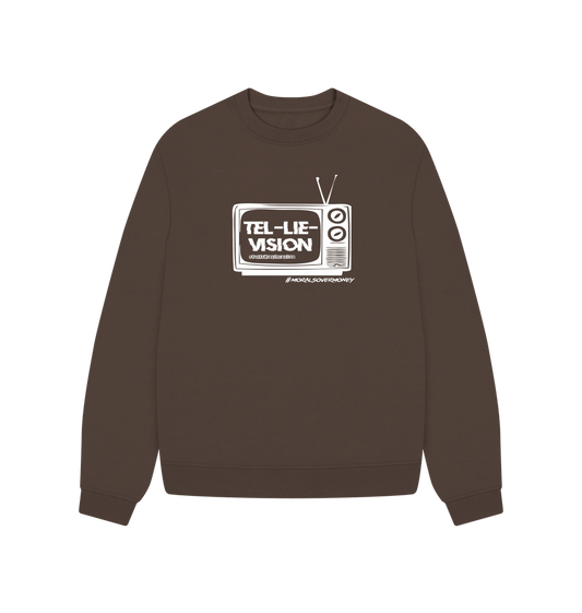 Women's 100% Organic Cotton 'Tel-Lie-Vision' Oversized Eco Jumper - White Logo