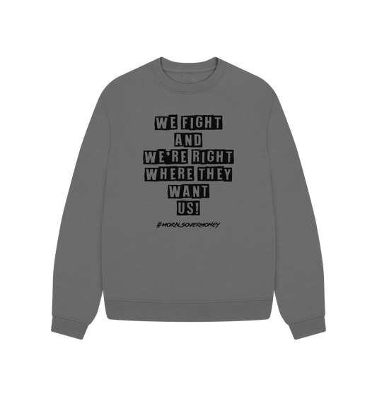 Women's 100% Organic Cotton 'We Fight' Oversized Eco Jumper - Black Logo