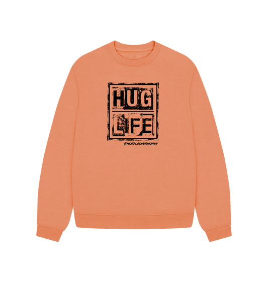 Women's 100% Organic Cotton 'Hug Life' Oversized Baggy Eco Jumper - Black Logo