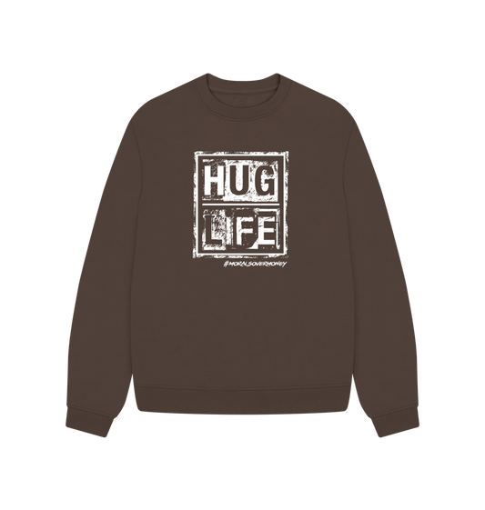 Women's 100% Organic Cotton 'Hug Life' Oversized Baggy Eco Jumper - White Logo
