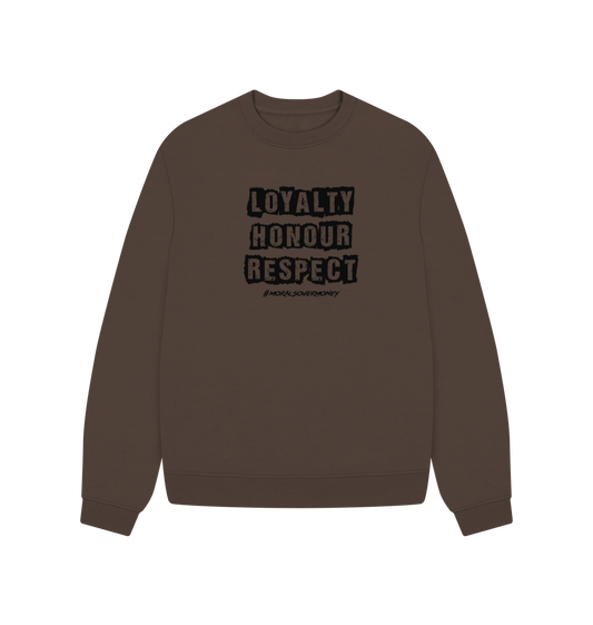 Women's 100% Organic Cotton 'Loyalty, Honour, Respect' Oversized Eco Jumper - Black Logo