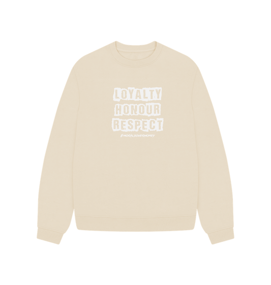Women's 100% Organic Cotton 'Loyalty, Honour, Respect' Oversized Eco Jumper - White Logo