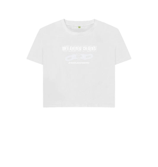 Women's 100% Organic Cotton 'Breaking Chains' Eco Boxy Tee - White Logo