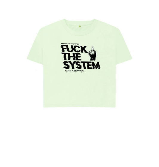 Women's 100% Organic Cotton 'F**k The System' Eco Boxy Tee Black Logo