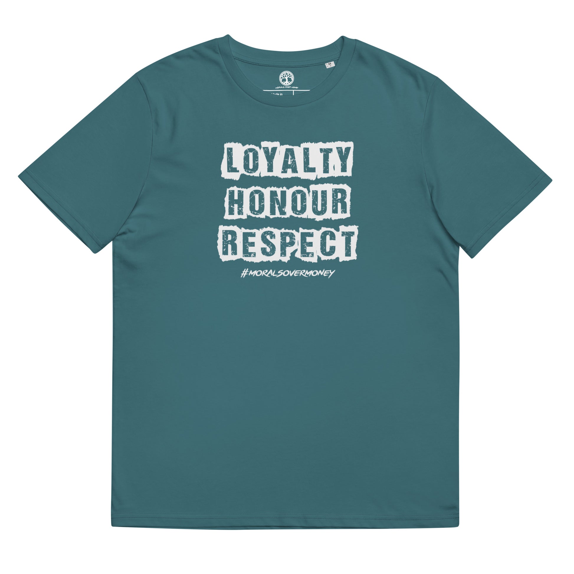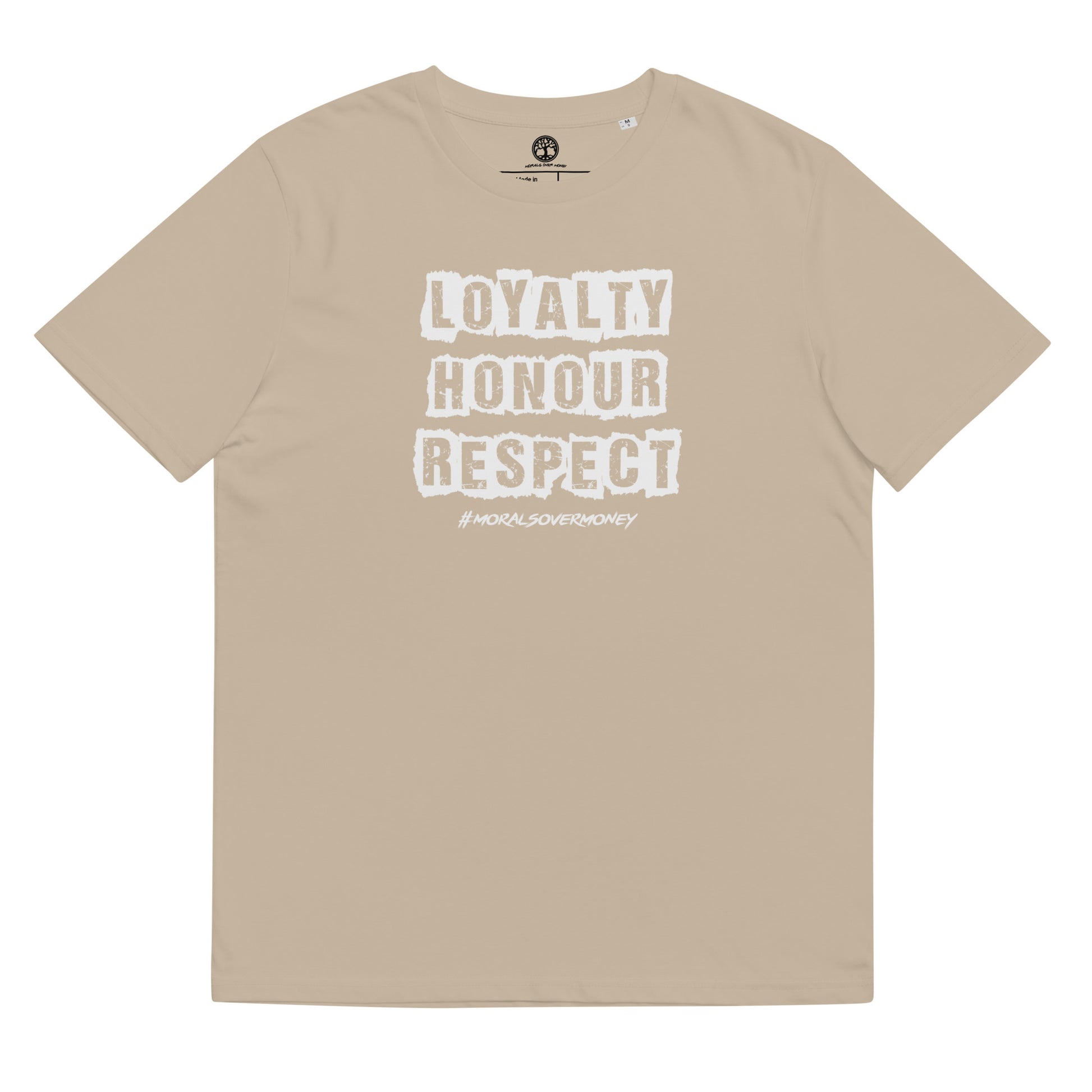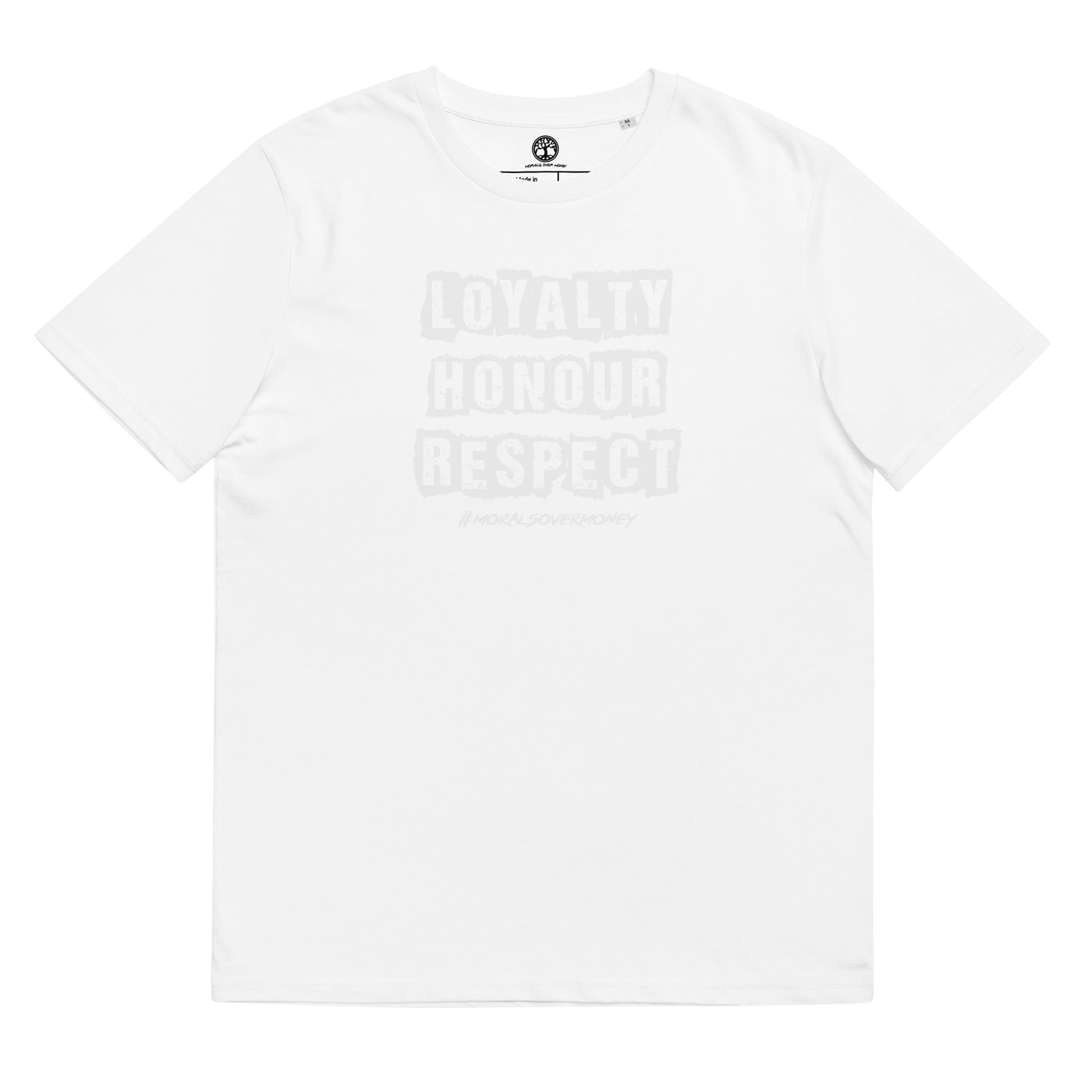 100% Organic Cotton 'Loyalty Honour Respect' Eco Tee - White Logo