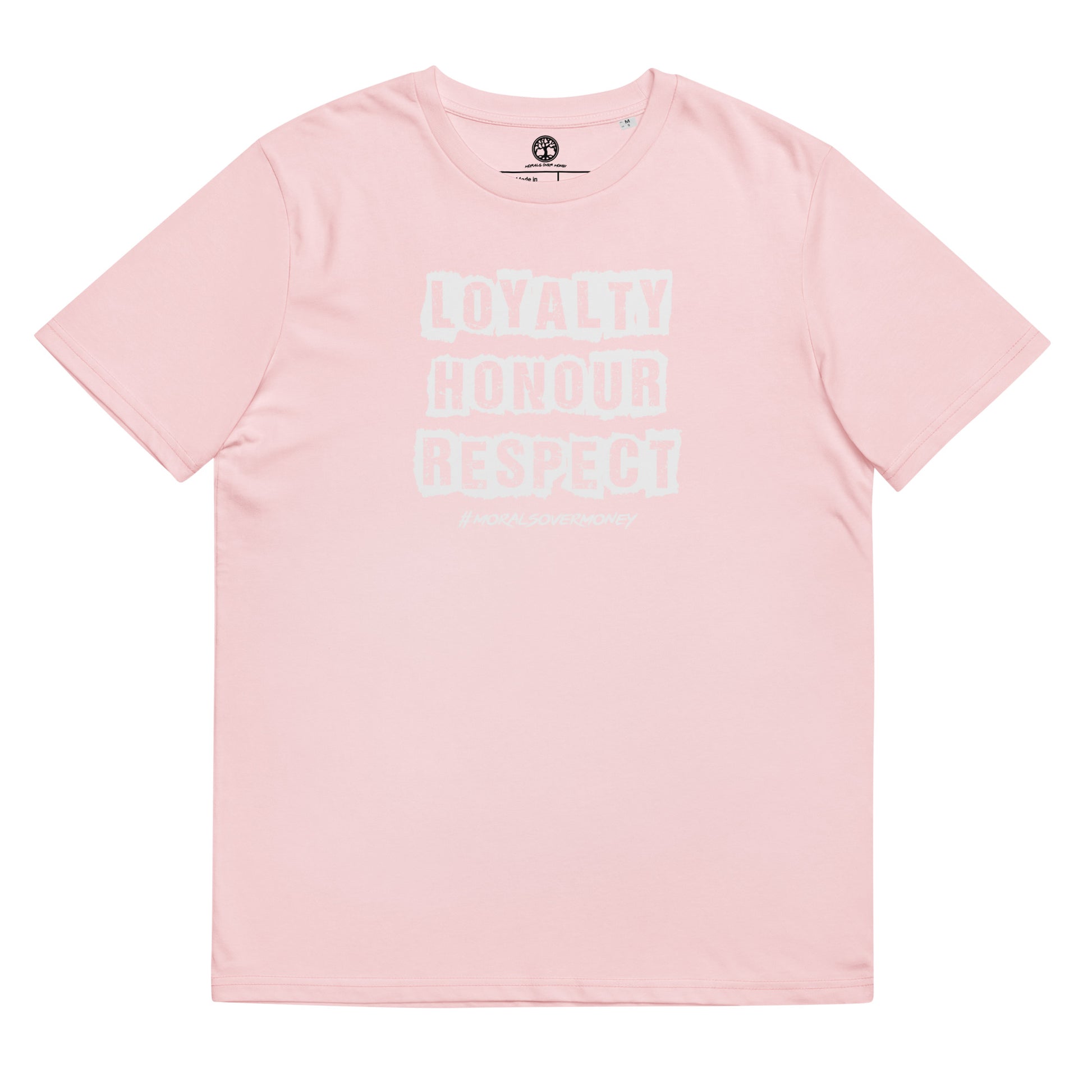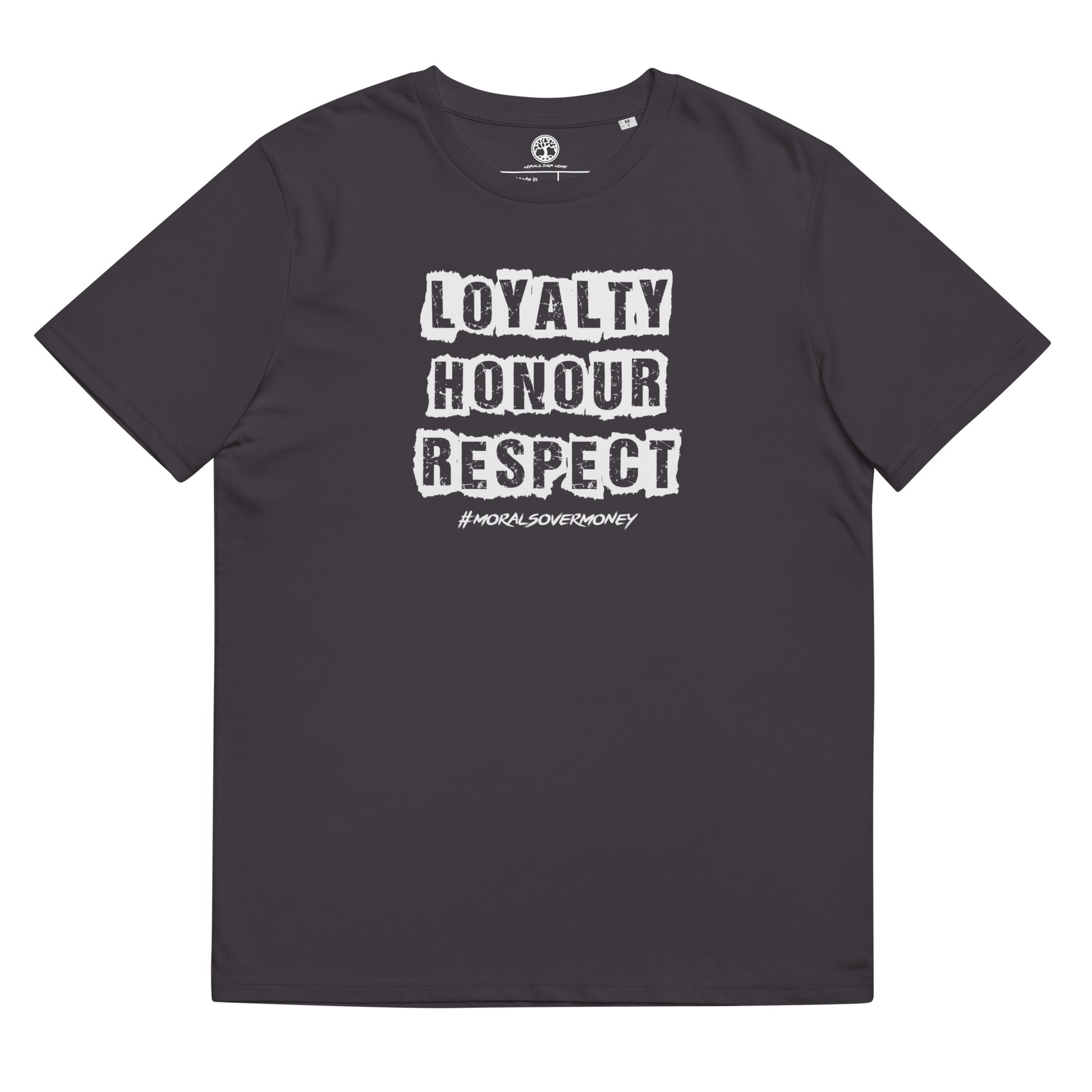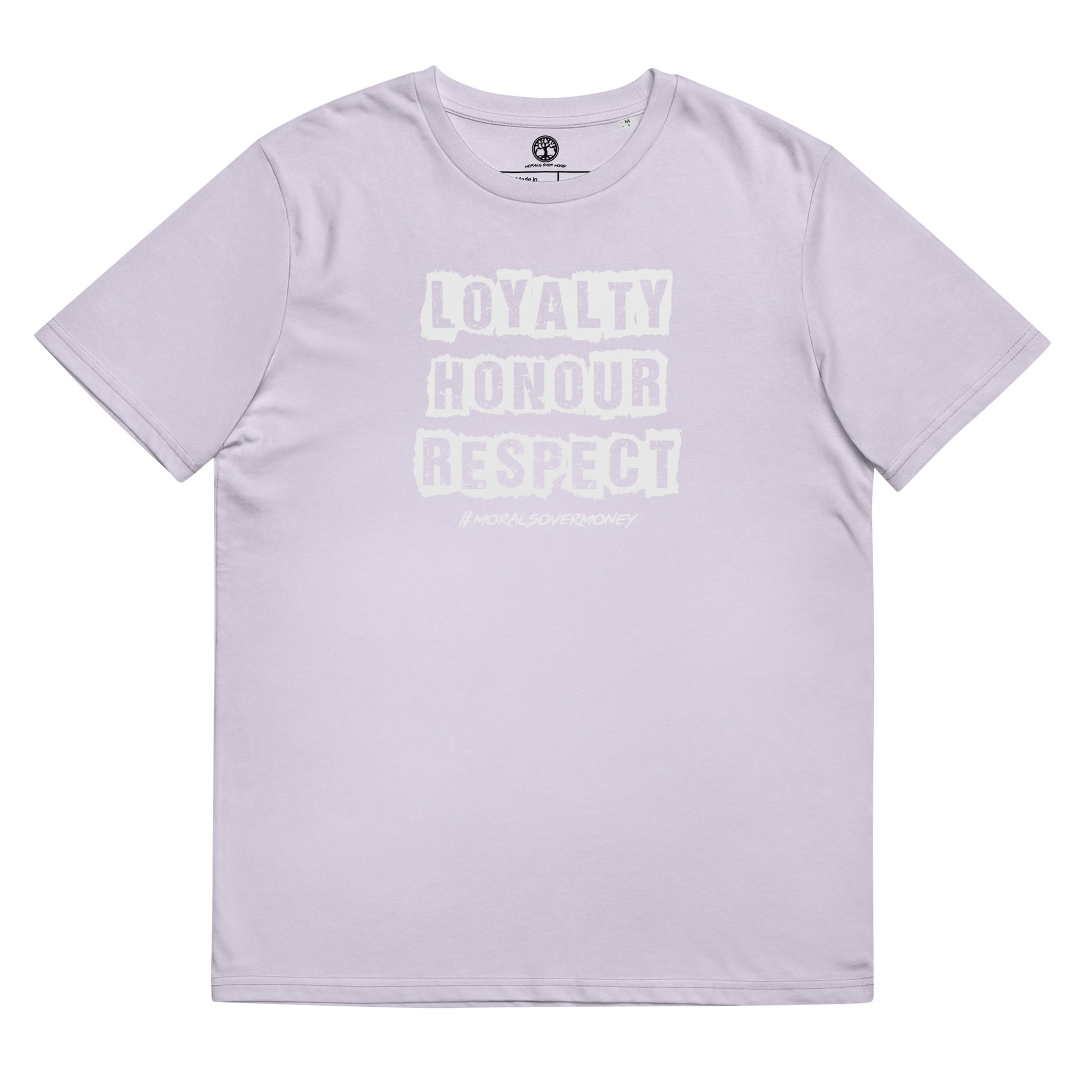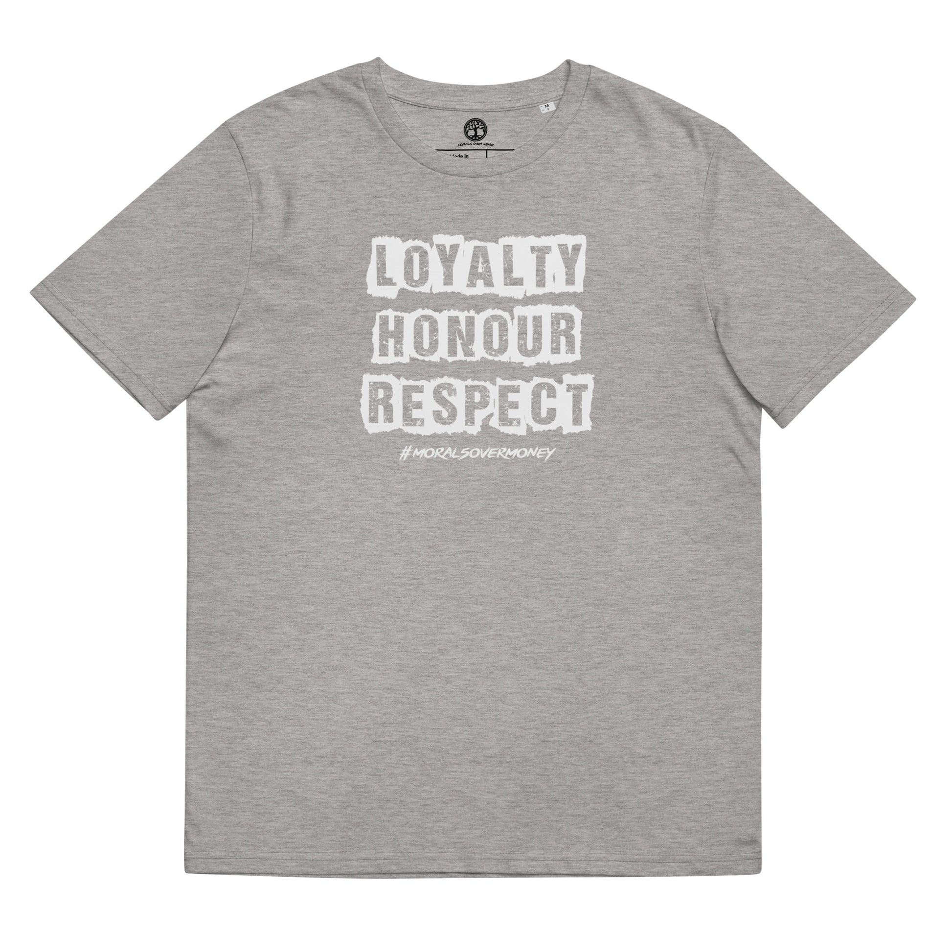 100% Organic Cotton 'Loyalty Honour Respect' Eco Tee - White Logo