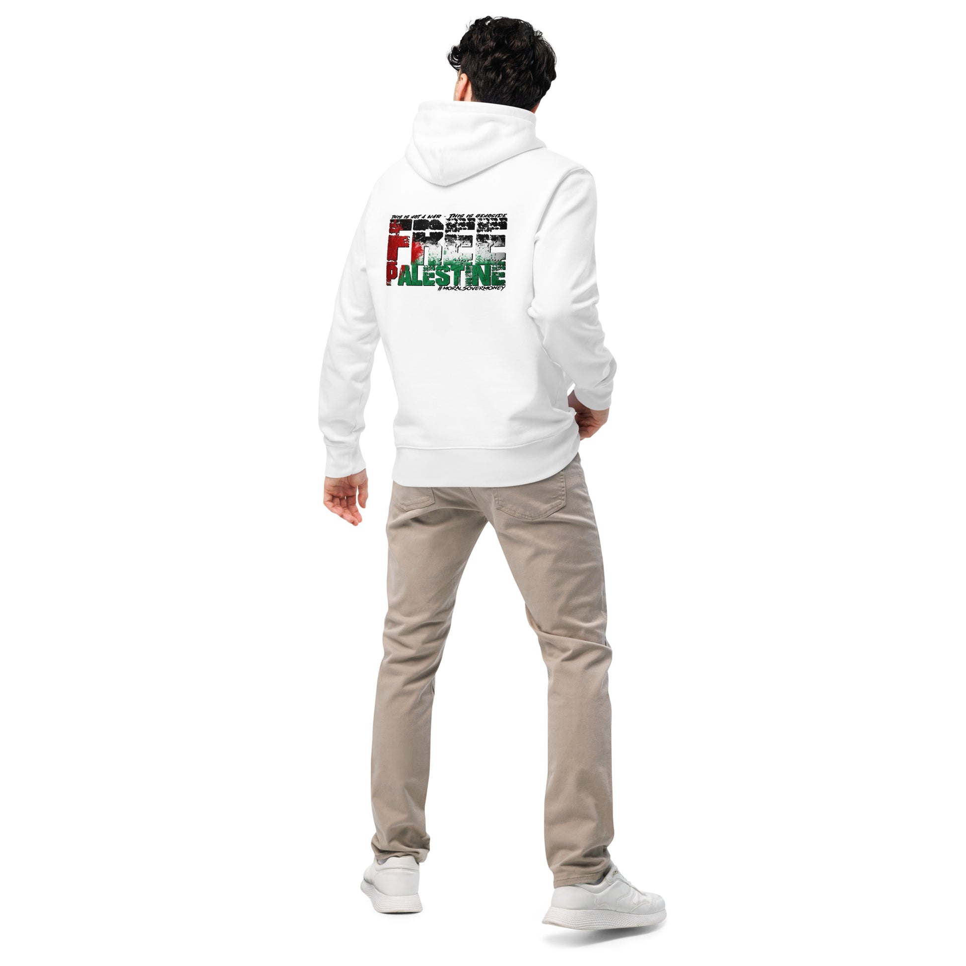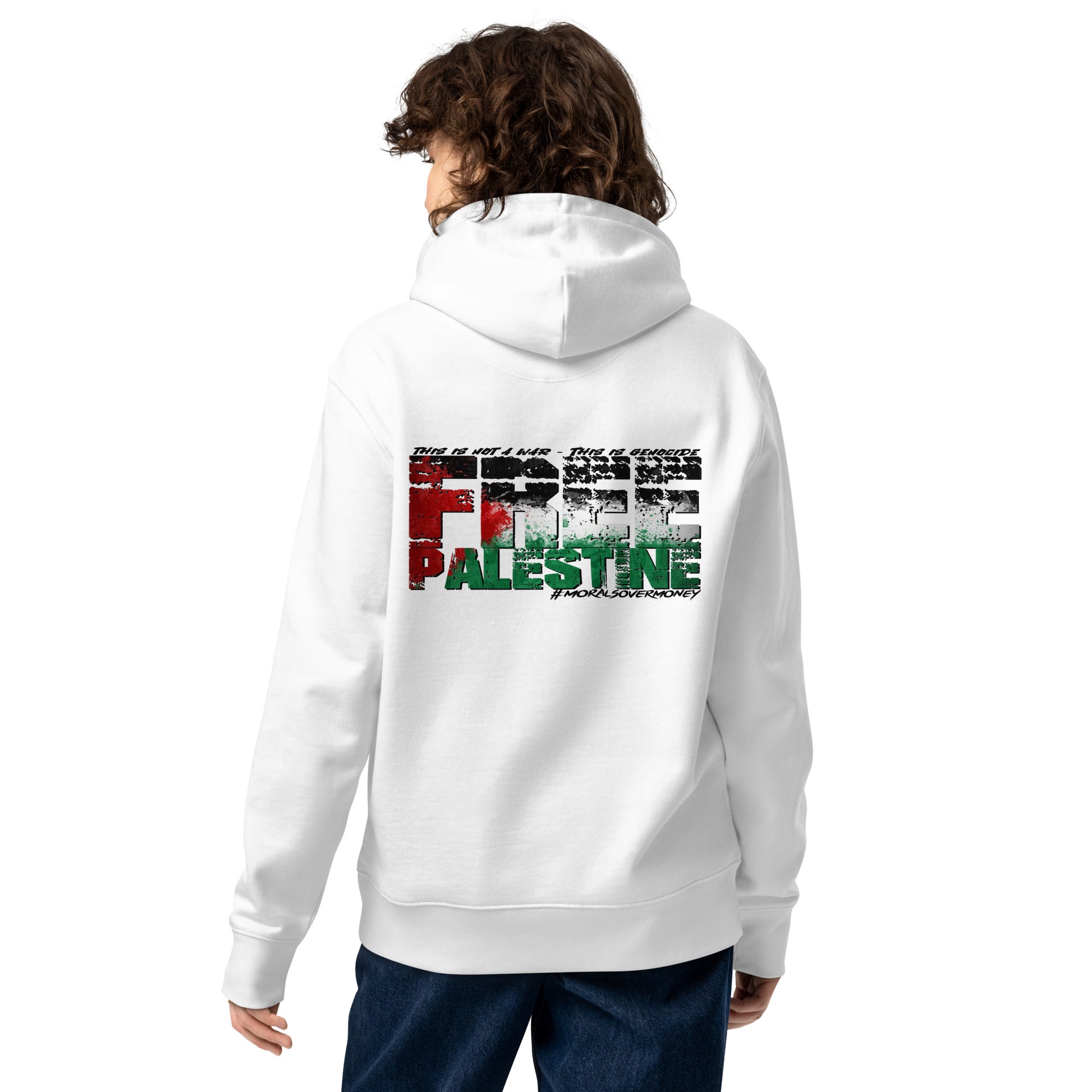 100% Organic Cotton Essentials 'Morals Over Money - Free Palestine' Eco Hoodie
