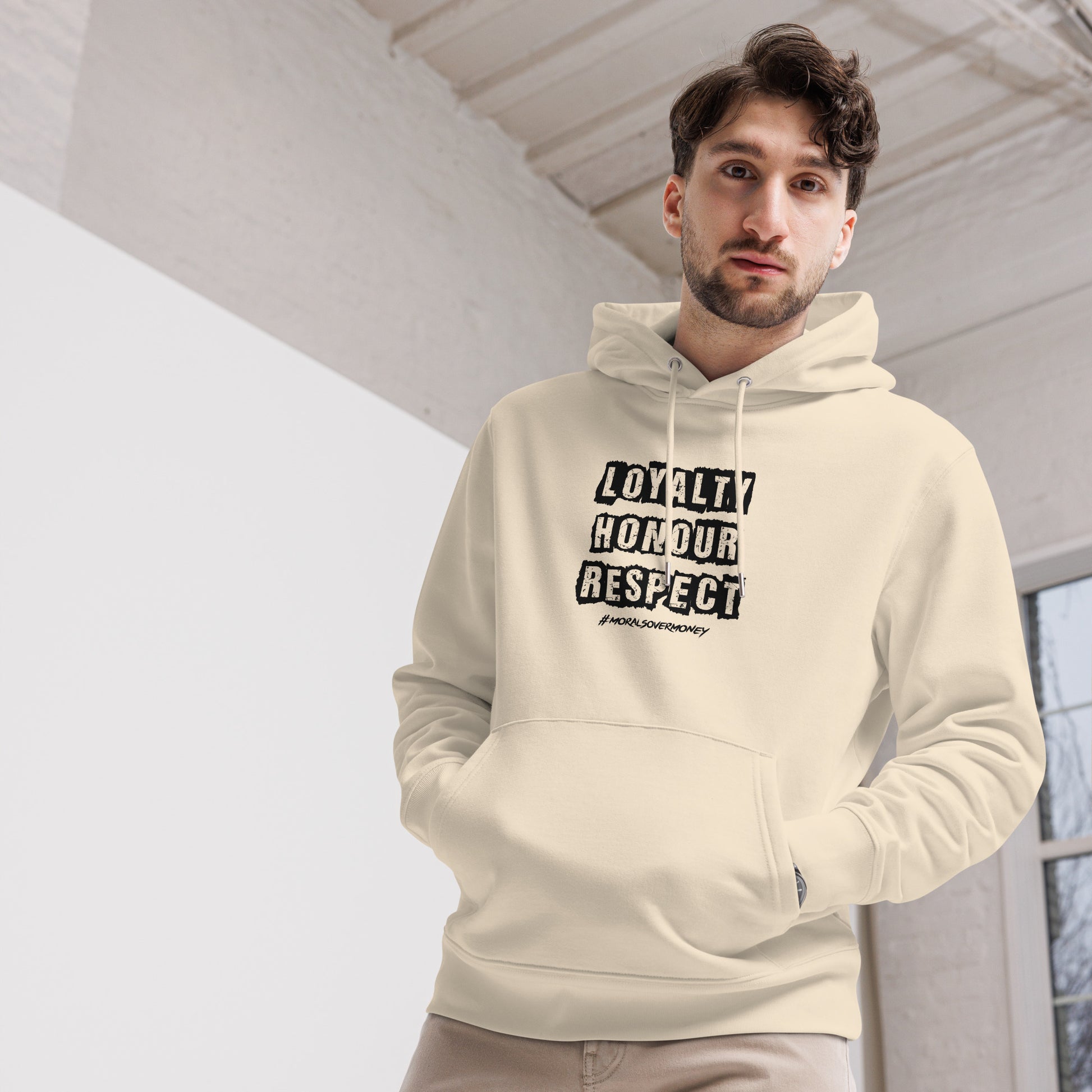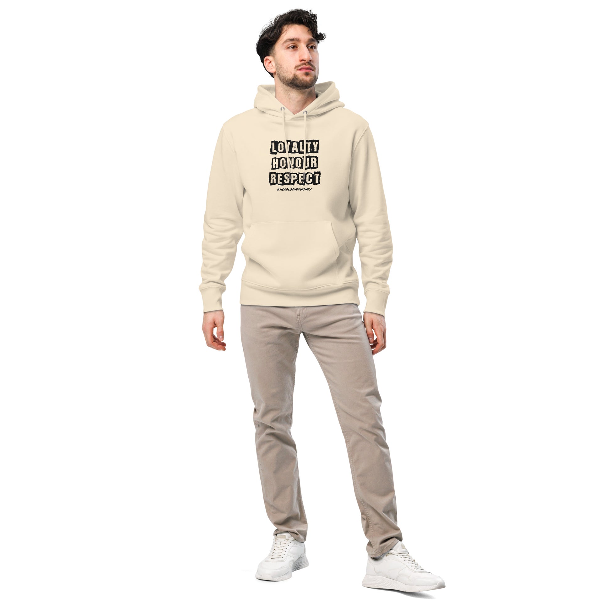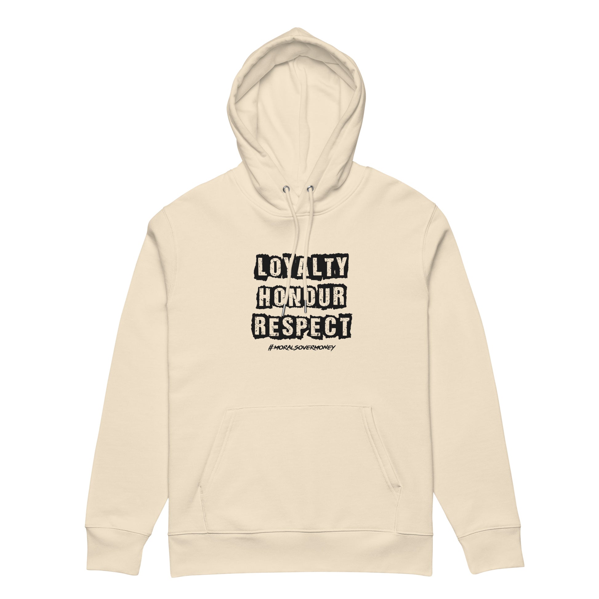 Embrace eco-conscious fashion with the unisex Loyalty, Honour, Respect Hoodie, crafted from 100% organic cotton. This soft, breathable, and durable hoodie offers a classic fit with set-in sleeves, a double-layered hood, and a front pouch pocket. Combining timeless style with modern comfort, it's the perfect addition to any wardrobe for those who value both ethics and everyday practicality.