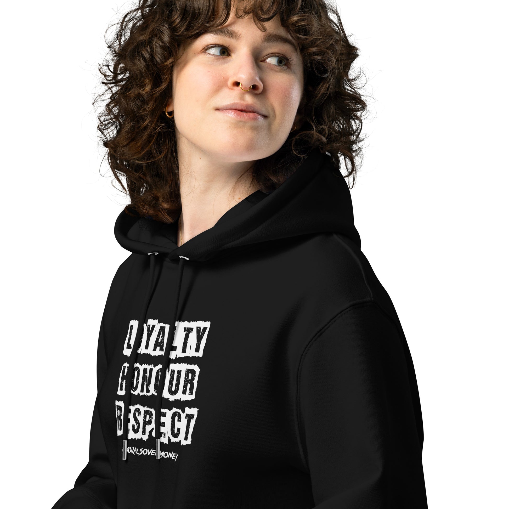 100% Organic Cotton Essentials 'Loyalty, Honour, Respect' Eco Hoodie - White Logo