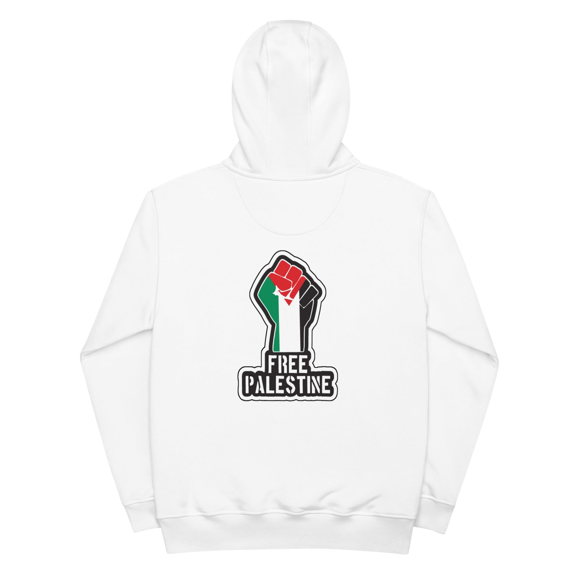 Organic Premium Morals Over Money Embroidered Eco Hoodie - With Free Palestine Fist Print on back